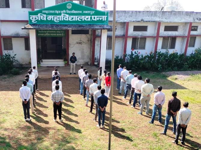 COLLEGE OF AGRICULTURE PANNA ME "VANDE MATRAM" KE SAMOHIK GAYAN KI PRASTUTI